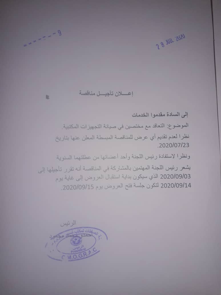 وبدأ من يوم 07/01/2021 تستقبل اللجنة عروض الشراء إلى غاية يوم 18/01/2021ويجب آن تكون العروض في ظروف مغلقةوكل ظرف تم ايداعه مفتوحا أو احتوى عرضا اقل من السعر الافتتاحي او مساو له يعتبر لاغيا.